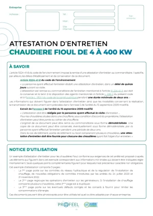 Attestation d'entretien : Chaudière fioul de 4 à 400 kW