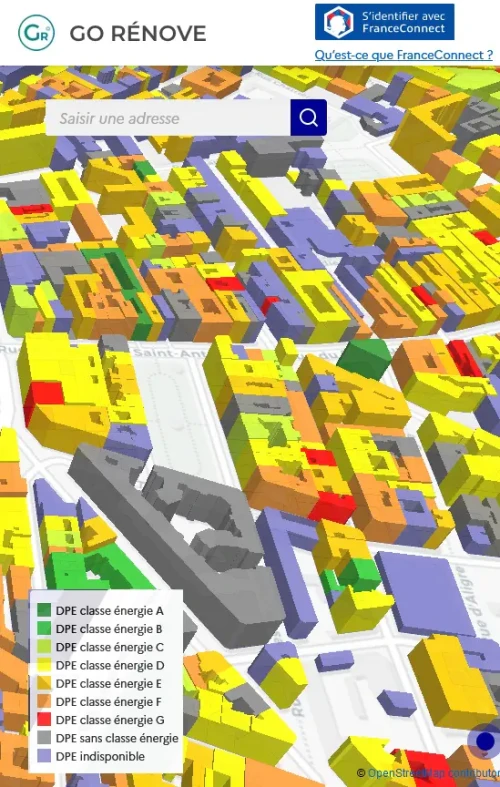 La solution Go-Rénove Territoires offre aux collectivités territoriales un soutien dans l'exercice de leur mission en lien avec la rénovation des bâtiments . Alimenté en données par la BDNB (Base de Données Nationale des Bâtiments), Go-Rénove permet d’identifier les bâtiments répondants à certains critères, de consulter les caractéristiques de plus de 32 millions de bâtiments, de visualiser leurs performances simulées (notamment le DPE, les gisements de rénovation, des indicateurs socio-économiques...) et de télécharger les données.
